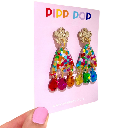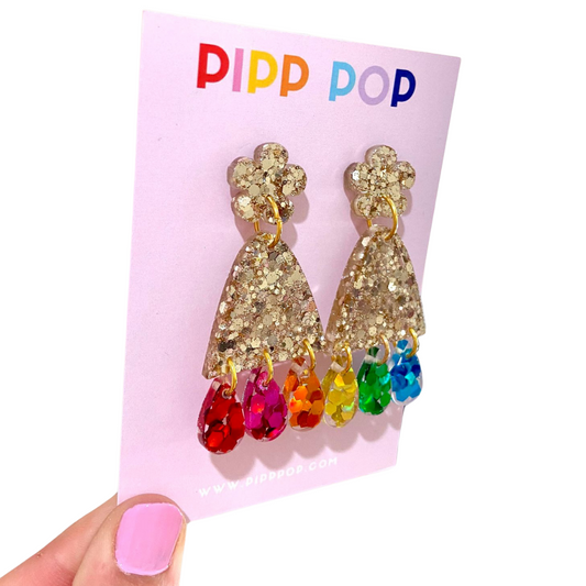 Suzie Glitter Dangles - Rainbow + Gold - 2 Styles available