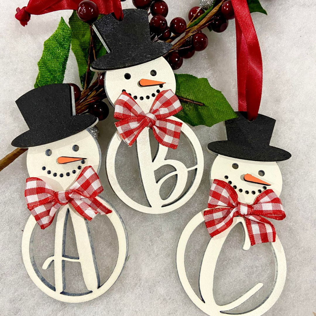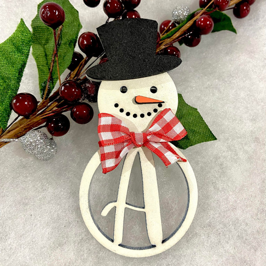 Monogram Snowman Christmas Ornament, the perfect personalised addition to your holiday decor!