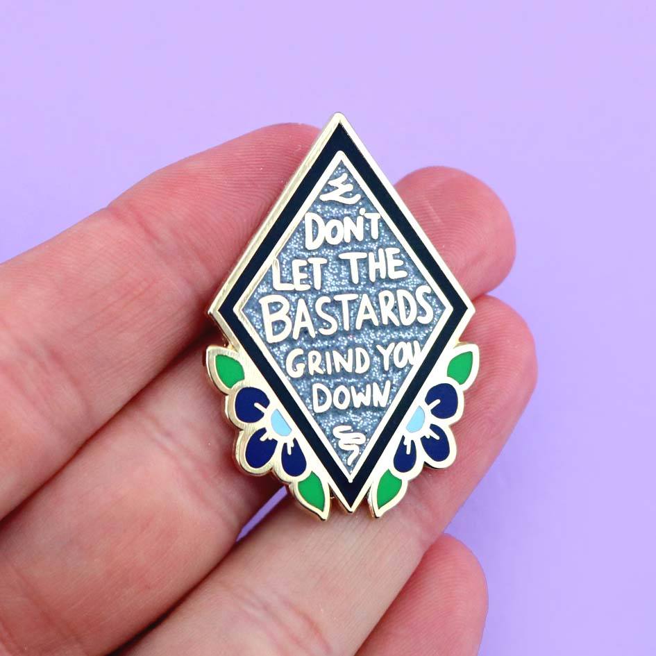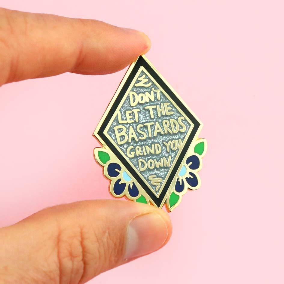 Don't Let The Bastards Grind You Down Enamel Lapel Pin