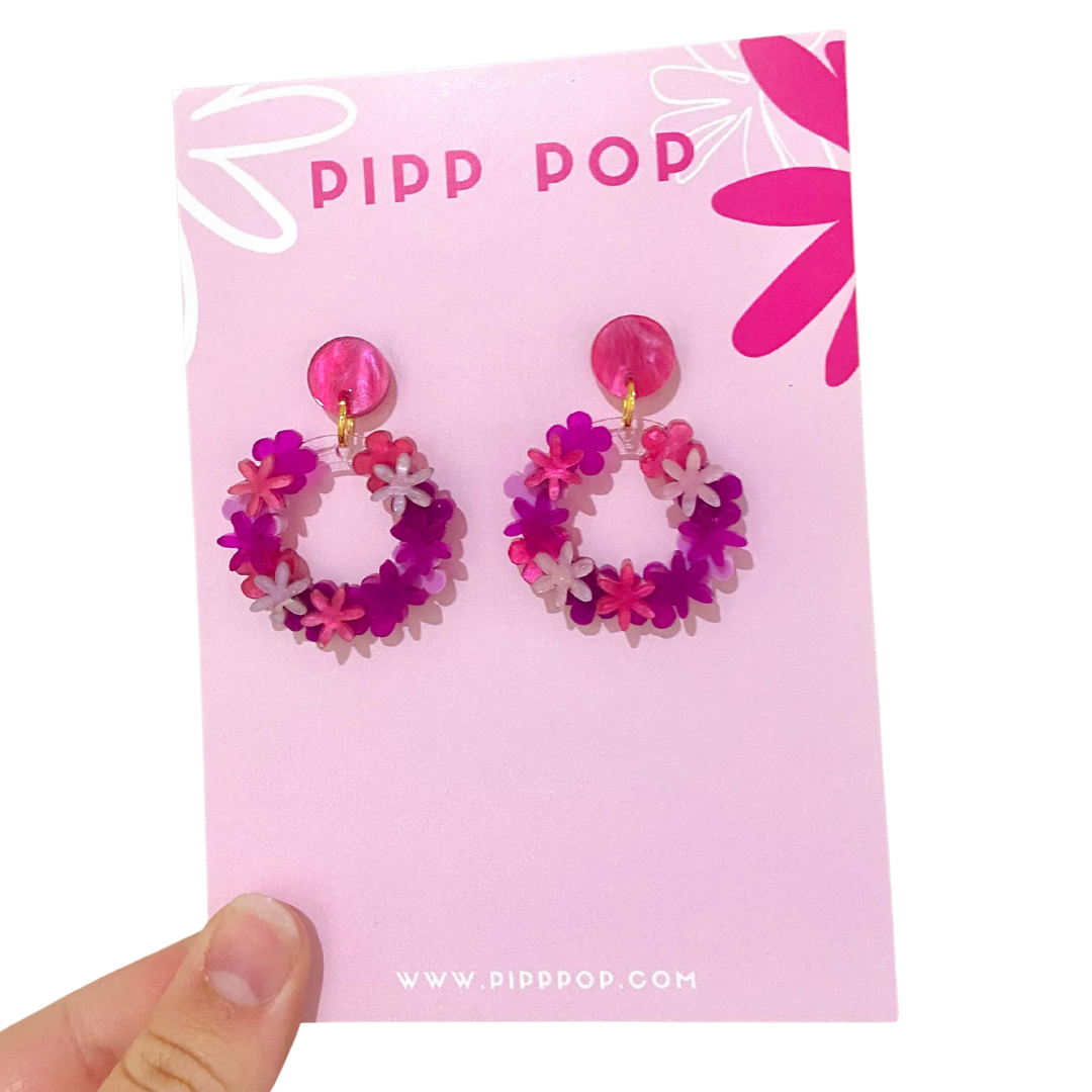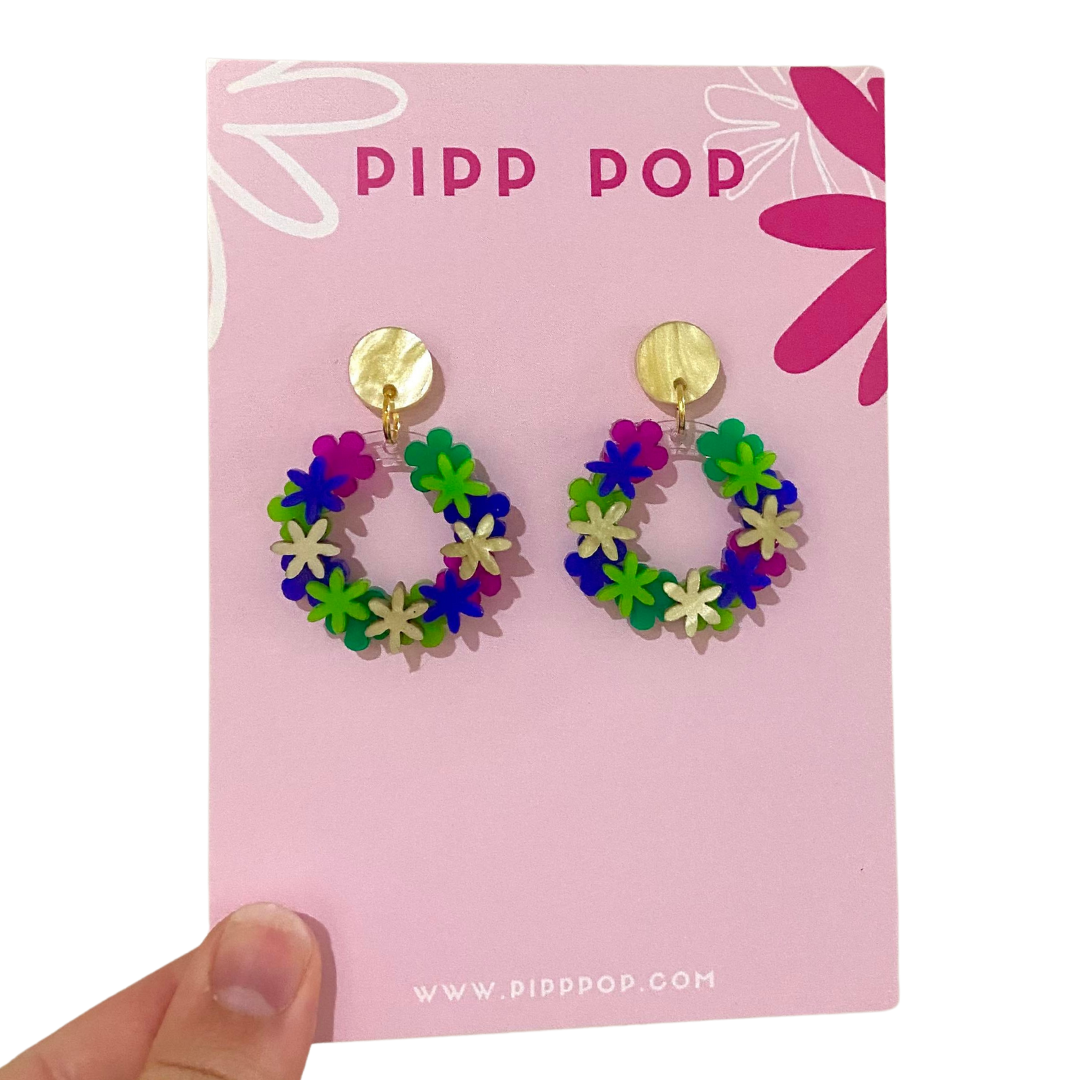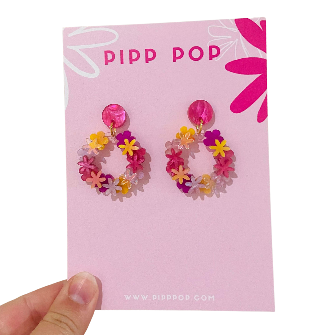 Introducing our Flower Bomb Dangles, a delightful accessory that infuses your style with a burst of vibrant colors and feminine charm.