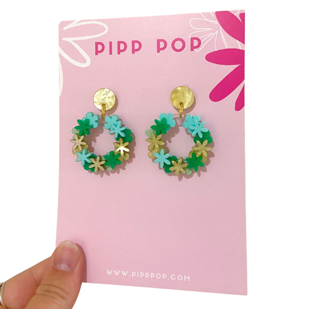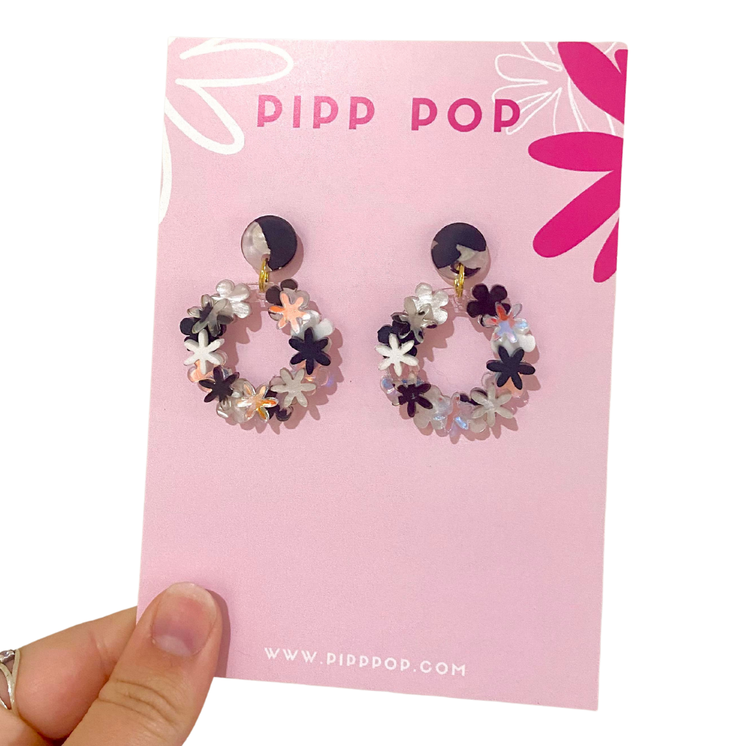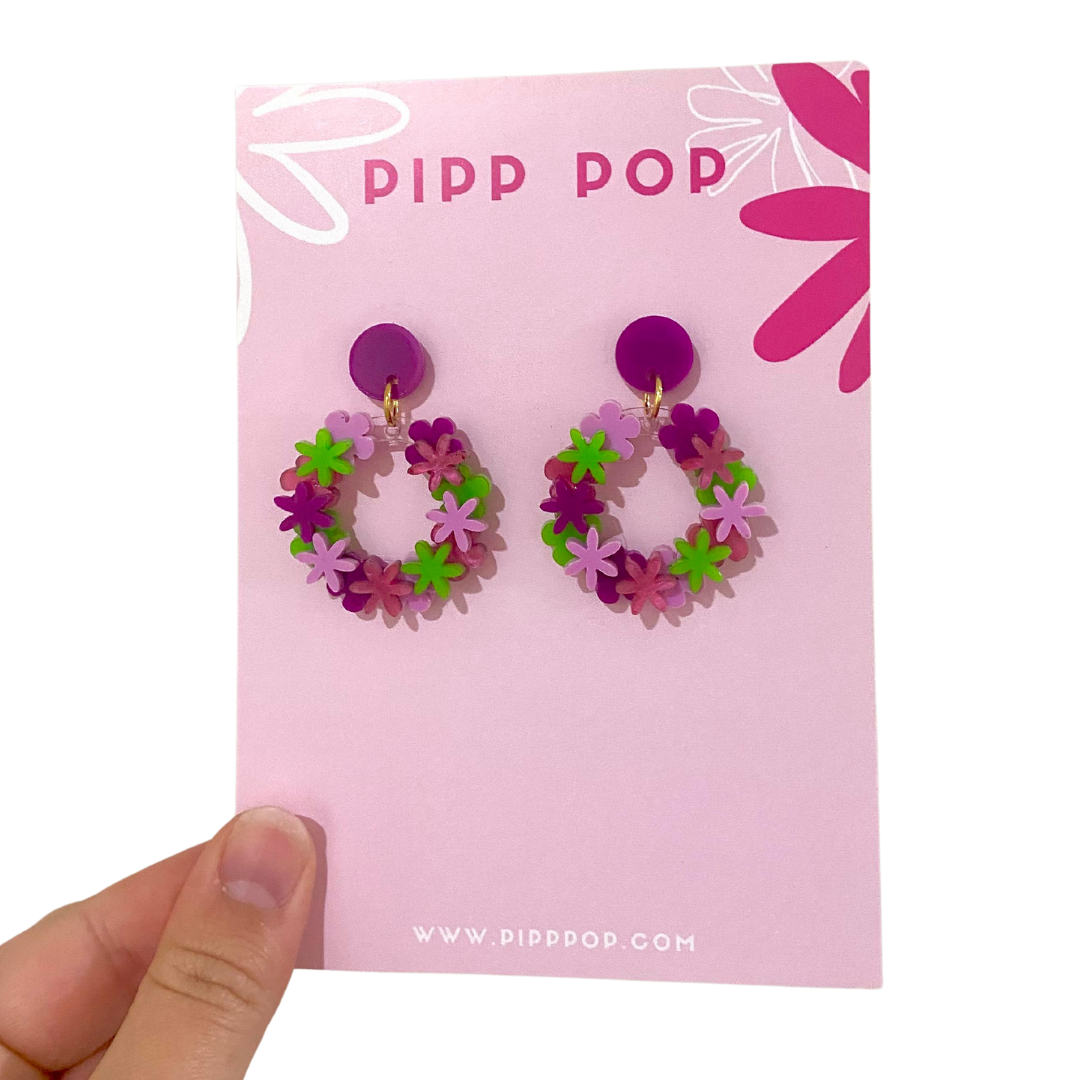 Introducing our Flower Bomb Dangles, a delightful accessory that infuses your style with a burst of vibrant colors and feminine charm.