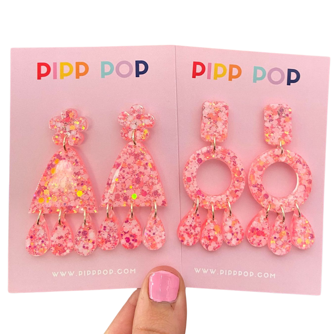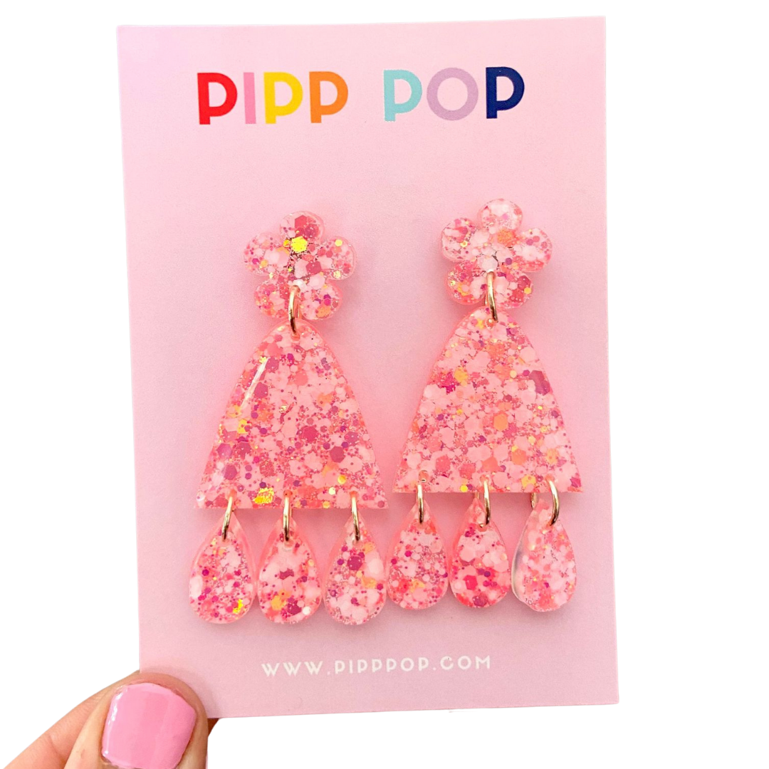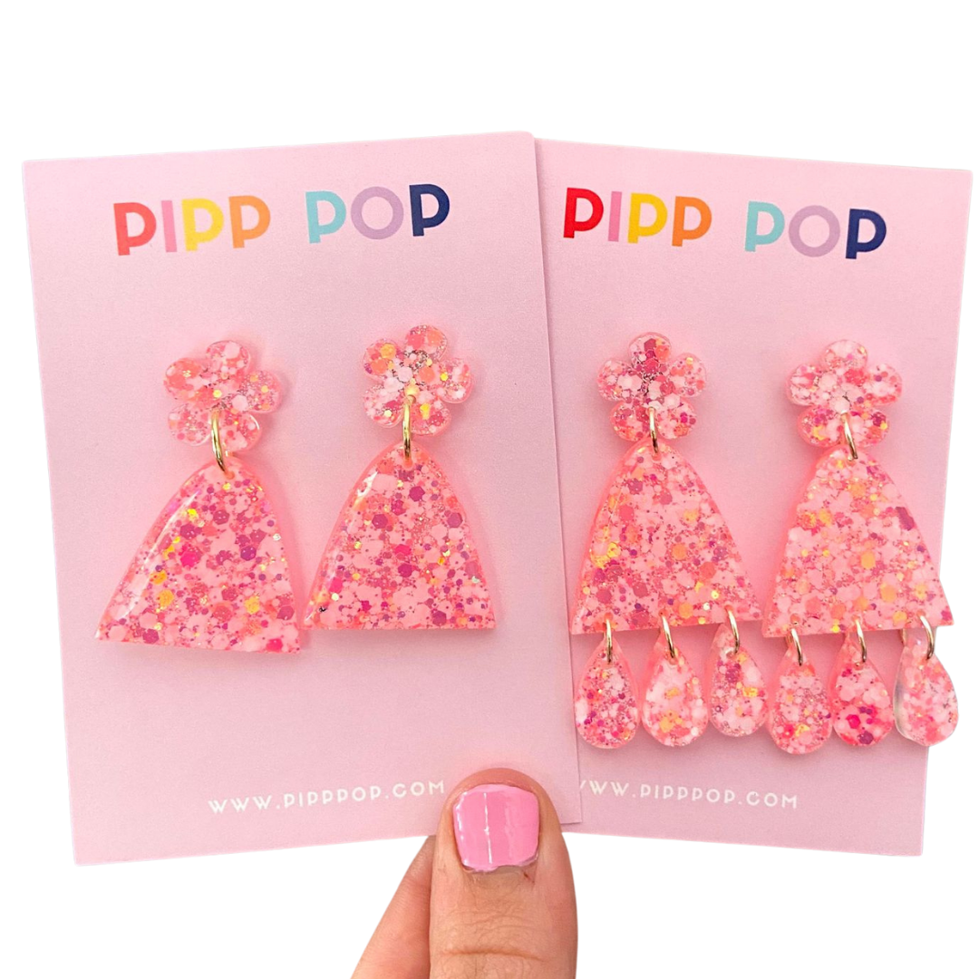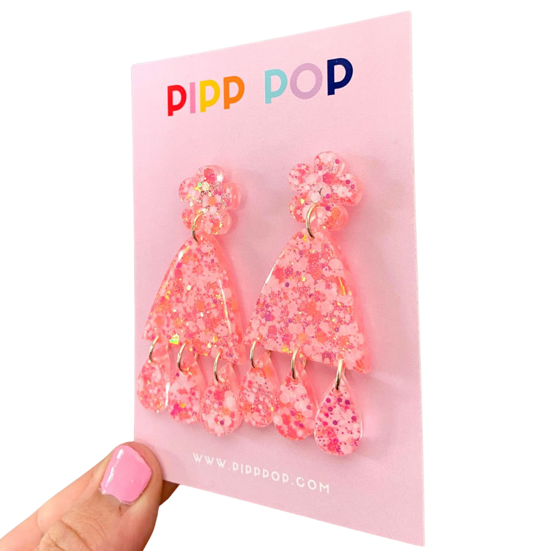 Whether you're attending a casual outing or a special occasion, our Suzie Glitter Dangles are the perfect choice for adding a whimsical and feminine touch to any outfit.