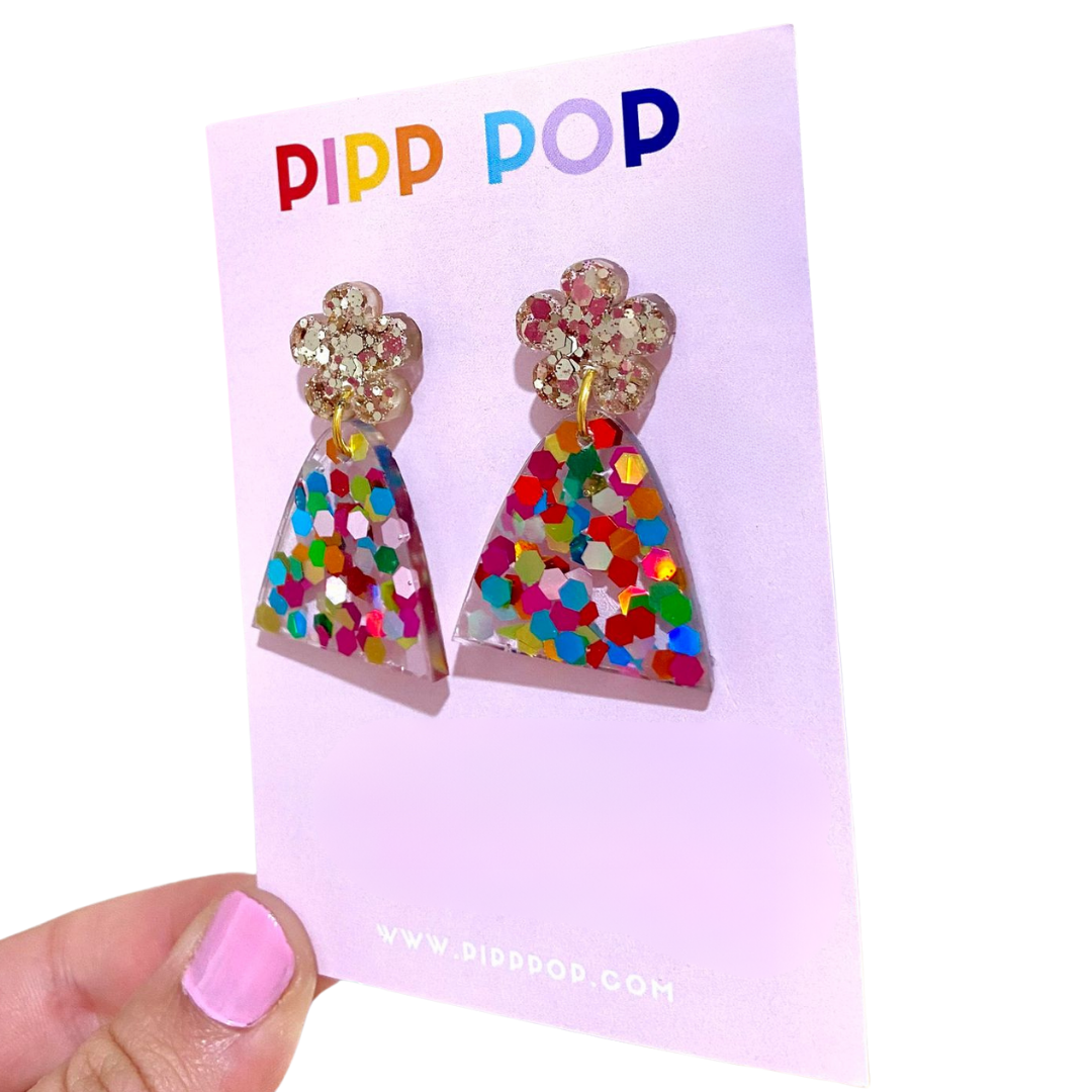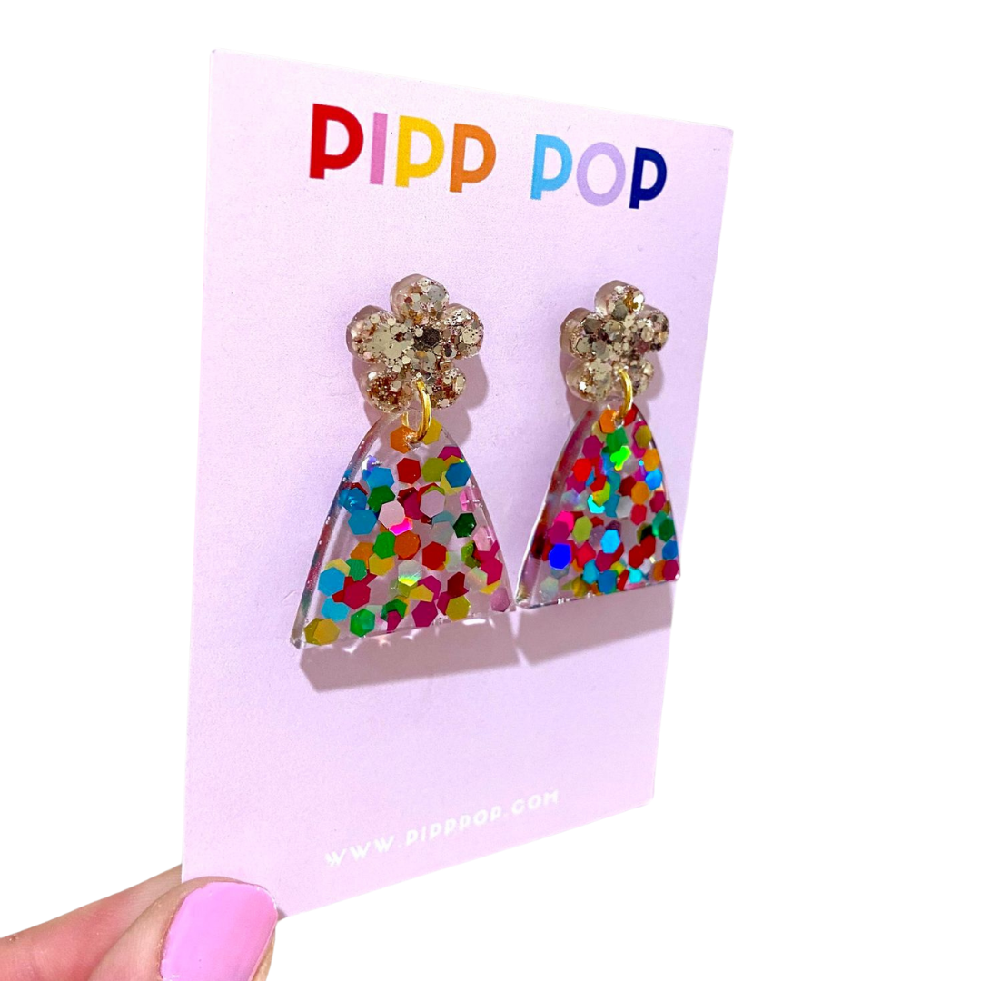 Whether you're attending a casual outing or a special occasion, our Evie Glitter Dangles are the perfect choice for adding a whimsical and feminine touch to any outfit.