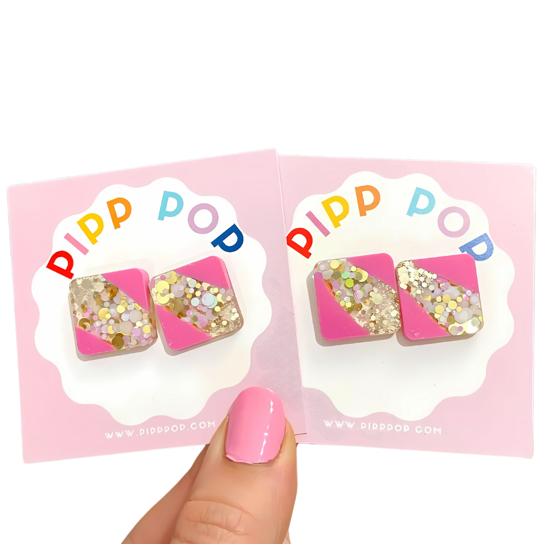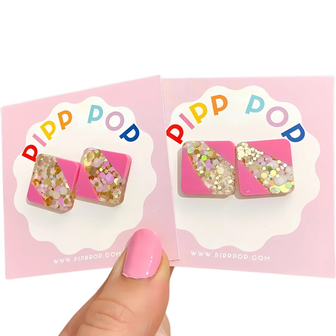 Shine bright like the star you are with these beautiful glittery resin square studs! Each one is packed with super sparkly glitter and oh-so-lightweight to wear.